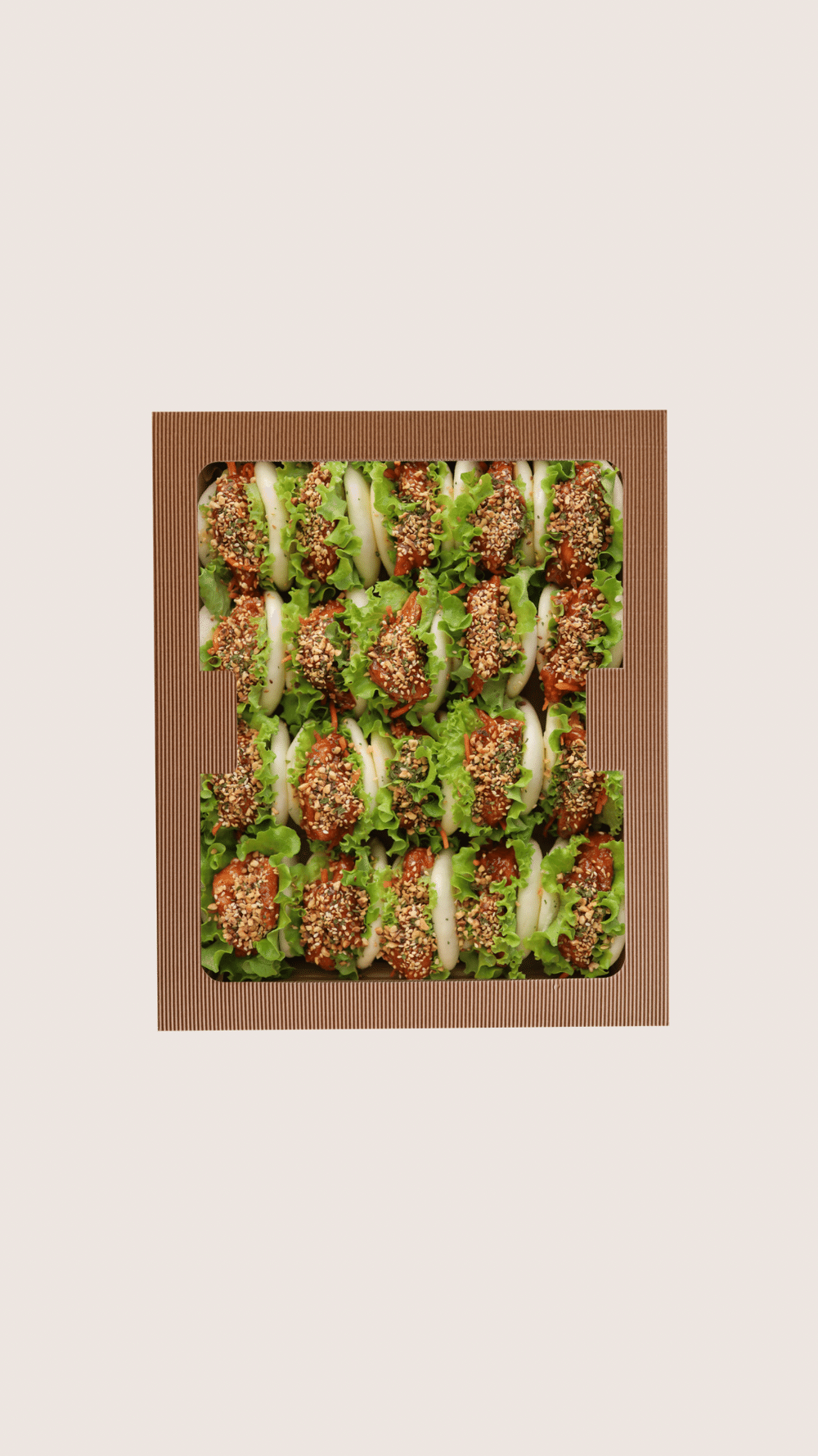 20 szt / 30 szt Mini bułeczki BAO z kurczakiem Delikatne mini bao z soczystym kurczakiem, autorskim sosem teriyaki i pikantną marchewką