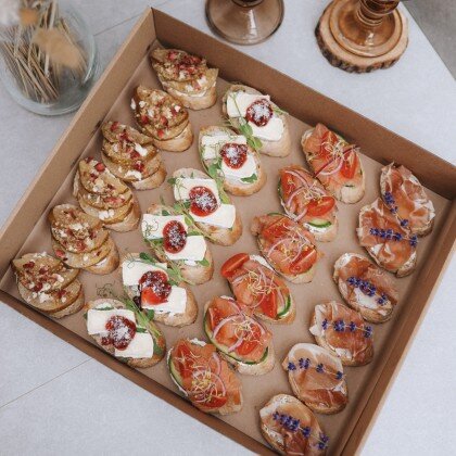 Bruschetta z gruszką, Bruschetta z krewetką, Bruschetta z Prosciutto crudo Zdjęcie poglądowe